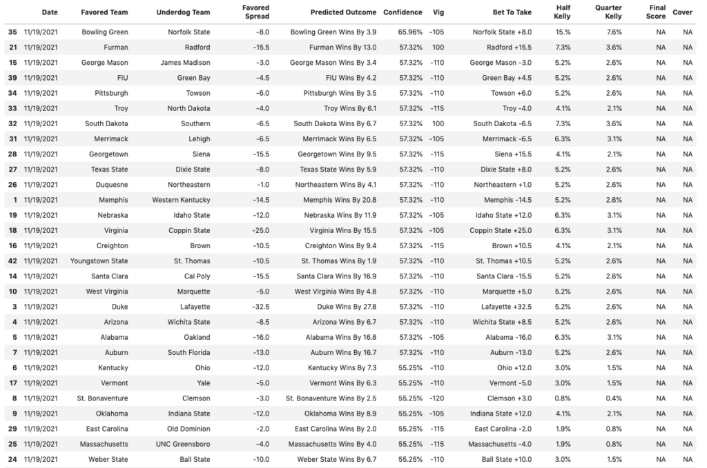 Algo Corner – 11/19/21 November 19, 2021 November 19, 2021 / By Team Action Happy Friday. Lots of games on the slate today.